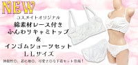 商品名 : 【コスメイトオリジナル】綿素材レース付きキャミトップ&インゴムショーツセット◆白/LL